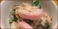 鶏キャベツ オクラとツナのマヨあえ チーズクリームケーキ