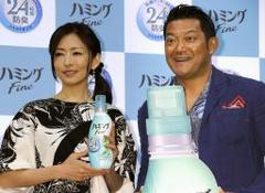 お笑いタレントの山口智充と女優の松雪泰子が、東京都内で開かれた柔軟剤「ハミングファイン」の新CM発表会に登場した。