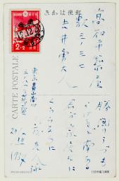 不倫騒動を起こした妻と別れ、長く思いを寄せていた女性と再婚した吉井を祝福するはがきも。日中戦争の南京陥落よりも君の新生活が喜ばしいという意味の歌が記されている。