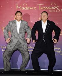 タレントのビートたけしが、東京・台場のアトラクション施設「マダム・タッソー東京」で行われた自身の等身大フィギュアのお披露目式に登場、一世を風靡したギャグ「コマネチ」のポーズを取ったフィギュアと並んで“Wコマネチ”を披露した。