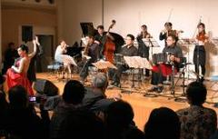 昨年に続く2回目で、今回は早大卒業生のバンドなども加わり6組が演奏。約400人が入るホールは満員で、細やかなリズムに足拍子を取って楽しむ人もいた。