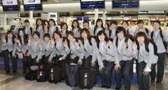 選手団そろいのジャケット姿で現れた選手たちは記念撮影するなどリラックスした様子で、FW坂上智子は「いよいよ五輪という感じ。自分らしい泥臭いプレーでチームを引っ張っていきたい」と笑顔で語った。飯塚祐司監督は「ここまでは順調。スピードあるホッケーが60分間できるように準備したい」と話した。