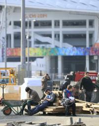 黒海に臨む五輪公園には氷上競技の会場が集まり、2千人が滞在できる選手村や巨大なメーンプレスセンターも併設されている。開閉会式を行う4万人収容のフィシュト五輪スタジアムなど六つの大型施設が表彰式会場を囲むように並ぶ姿は壮観で、冬季五輪では異例の規模を誇る。各会場は内装が仕上げられ、公園への玄関口となる鉄道駅も完成が間近だ。