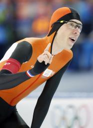 スピードスケート男子1万メートルで、5000メートル3位のヨリット・ベルグスマ(オランダ)が12分44秒45の五輪新記録で初優勝した。スベン・クラマー(オランダ)は4秒57差の2位で、5000メートルとの2冠を逃した。3位にボブ・デヨングが入り、オランダ勢は男女合わせ今大会4度目の表彰台独占となった。 日本選手は出場していない。(共同)