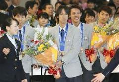 ソチ冬季五輪のノルディックスキー・ジャンプ男子ラージヒルで銀、団体で銅メダルに輝いた41歳の葛西紀明選手らが20日、成田空港に帰国した。ファンの拍手を浴び「予想以上の盛り上がり。胸を張って帰って来られてうれしい」と笑みを浮かべた。