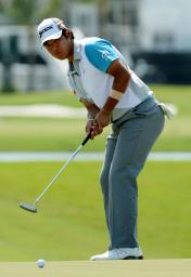 【ドラル(米フロリダ州)共同】男子ゴルフの世界選手権シリーズ、キャデラック選手権は6日、米フロリダ州ドラルのトランプナショナル・ブルーモンスター(パー72)で第1ラウンドが行われ、松山英樹は17ホールを終えて4バーディー、4ボギーでイーブンパーだった。悪天候で2時間以上中断した影響で日没サスペンデッドとなり、6人しか競技を終えられなかった。