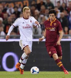 【ローマ共同】サッカーのイタリア1部リーグ(セリエA)で本田圭佑が所属するACミランは25日、敵地でローマに0―2で敗れ、6連勝を逃した。左足首を捻挫していた本田は右MFで3試合ぶりに先発して後半36分までプレーしたが、目立った働きはできなかった。