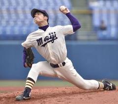 1点を先制された明大は二回に追い付き、代打竹村の適時打で勝ち越し。八回に2点を加えた。左腕斉藤は7回無失点の好救援だった。